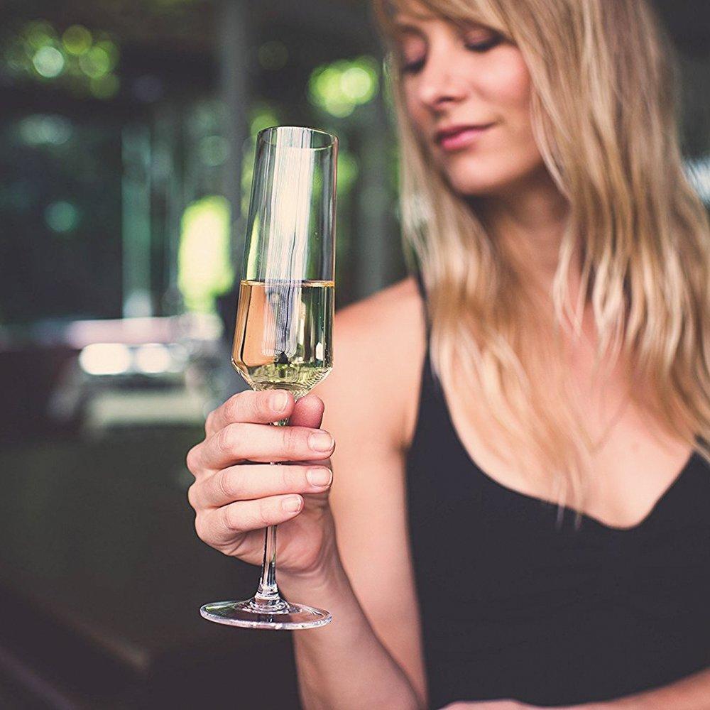FEEL GOOD IN THE HAND: They look good and feel good in your hand and mouth, unlike plastic champagne flutes. Our crystal champagne flutes feel natural and are easy to hold. They have a shorter stem so they are a lot more stable and not easily tipped over.