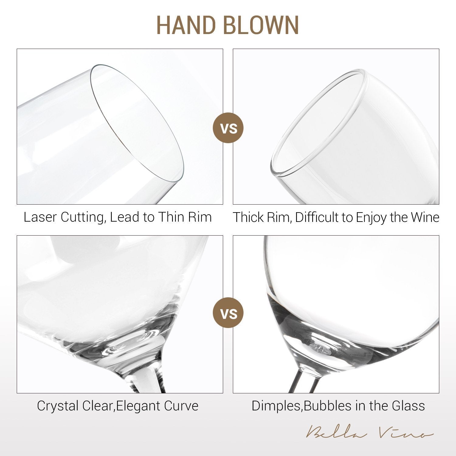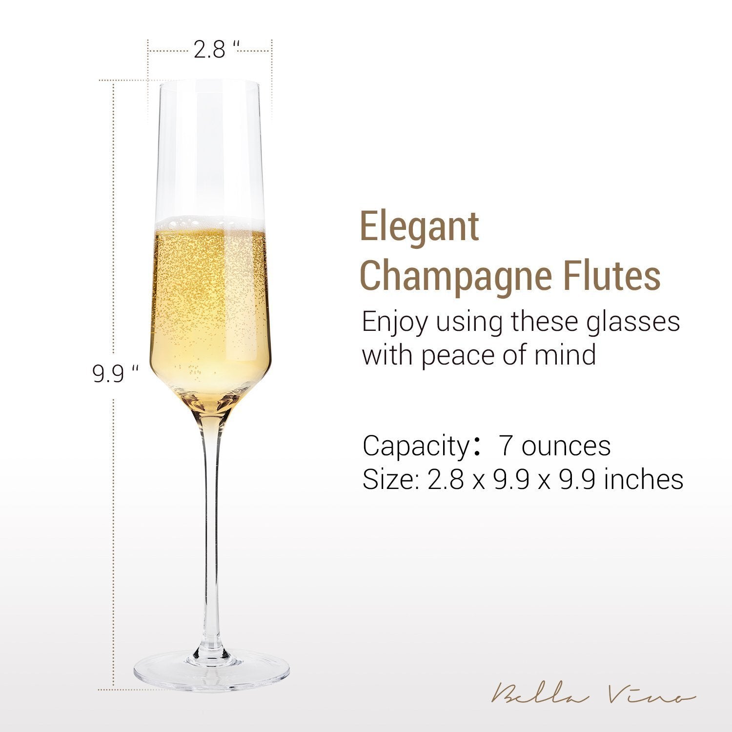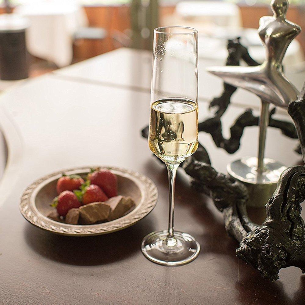 PREMIUM CLEAR CRYSTAL: Bella Vino champagne flutes are made from lightweight yet durable lead-free crystal glass so you can see and taste your wine (not the glass). Scratch-resistant quality that will last for years. Hand washing recommended