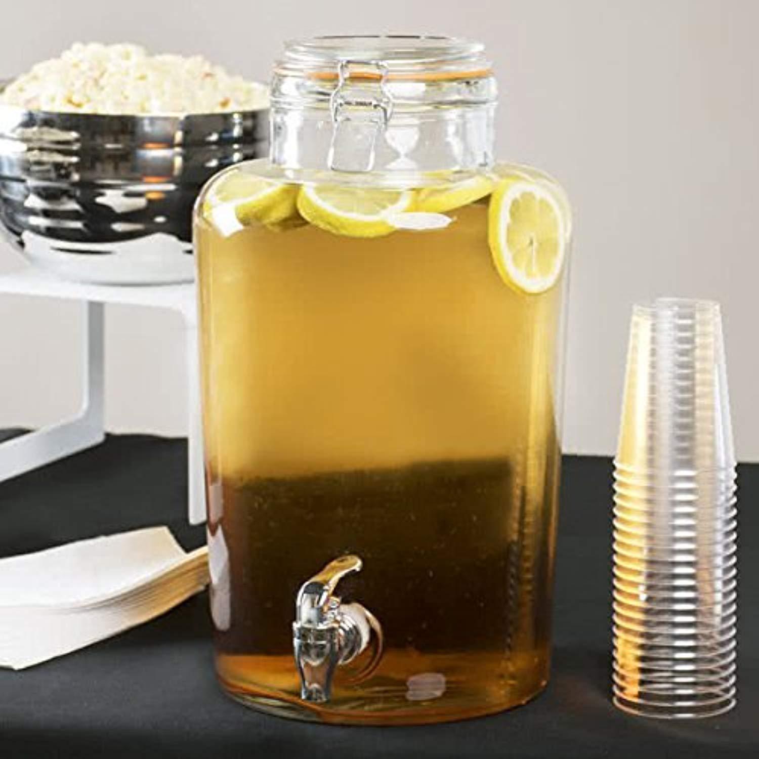 This 2 Gallon dispenser's attractive, old-fashioned design is sure to enhance your beverage service and add a rustic touch to your venue Made of thick, durable glass, this versatile, non-insulated dispenser can be displayed and used behind counters or set out on buffet tables