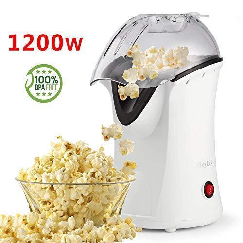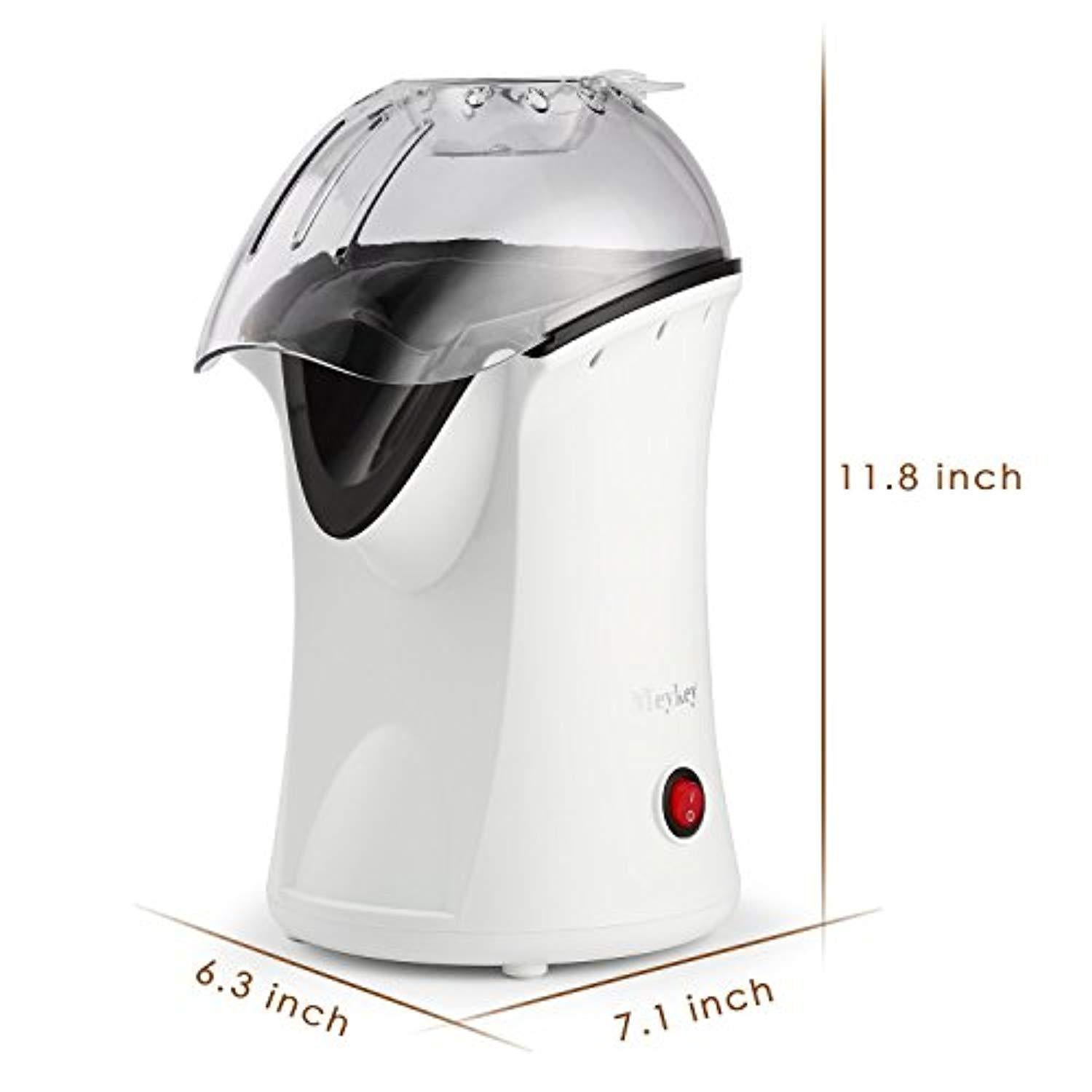 【Easy Operation】Add a single spoon of kernels (about 2.82oz/60g) into the main chamber using the provide measurement spoon, turn on the unit and wait for about 2-3 minutes. The transparent cover allows you to watch the whole process. NOTE: It can not directly add butter and sugar. After the flavor Popcorn has been, you can add condensed milk, butter, cream and more. 【High Efficiency】 The popcorn machine pops each and every kernel evenly and quickly, up to 98% popping rate. Unique wind channel ensures constant hot air to produce healthy and tasty popcorn. 【Easy to Clean】Removable popping chute is easy to clean. Just need to clean the cup and lid with soap and water and clean the rest portion of the machine with a damp cloth. 【Quiet Operation】After an aluminum turbine chamber heats evenly, air is used to eject popcorn when ready. It only produces low noise. It is no need to worry about disturbing others when using. 【Healthier Choice】Use a hot air popping method so no oil required. It makes popcorn a healthier snack choice for the whole family.