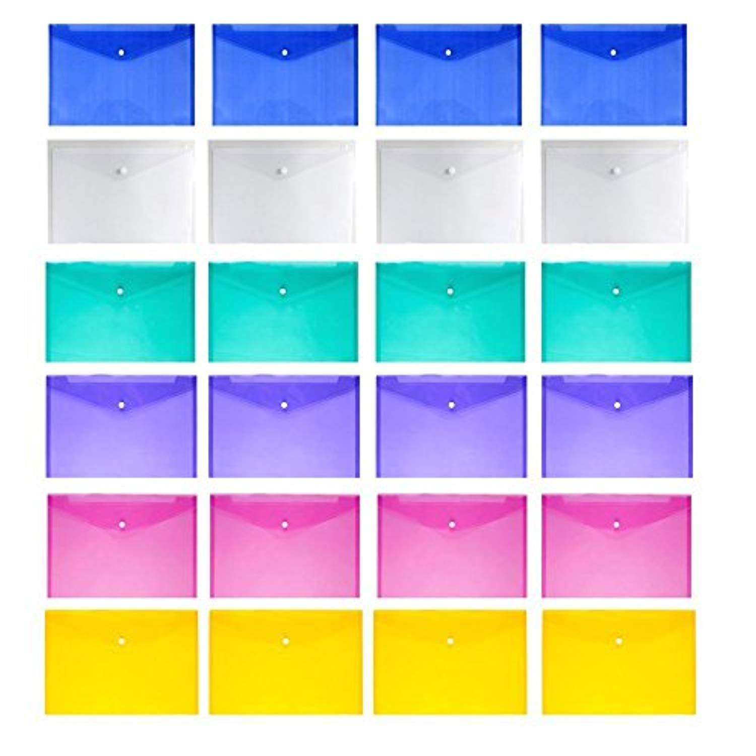 Package includes: 24 poly envelopes with snap button closure in 6 colors. Users can effectively classify documents based on colors.