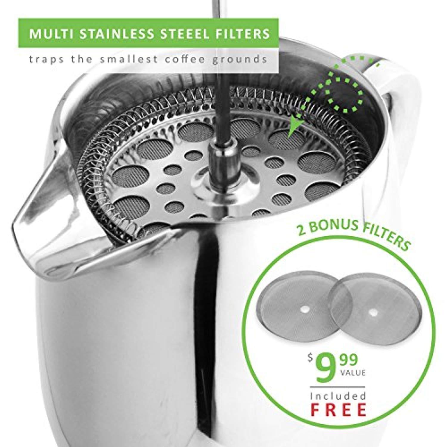 LINKYO Coffee French Press - Stainless Steel Coffee Maker 34oz, 1L